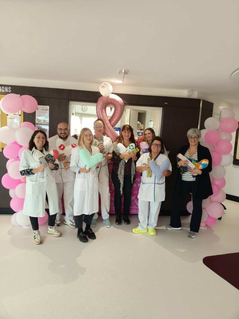 Le jeudi 30 octobre, l’association BionZamis est intervenue au sein du service de chirurgie gynécologique et mammaire pour remettre des coussins de protection et des passants de ceinture destinés aux patientes opérées du cancer du sein.